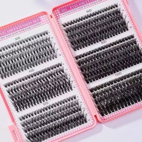 Faux cils auto-adhésifs segmentés transfrontaliers de style européen et américain pour Amazon 110DD cils thermofusibles